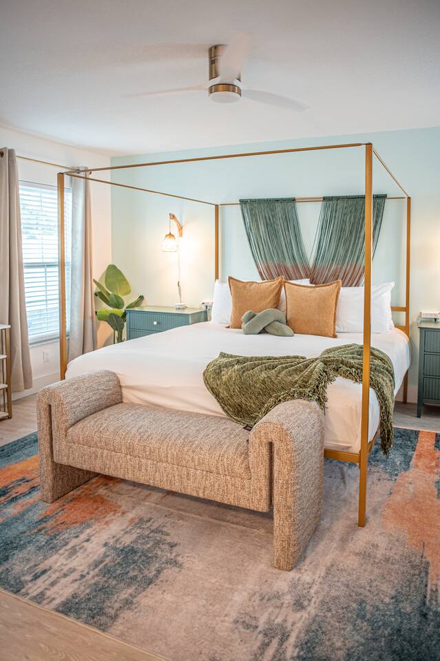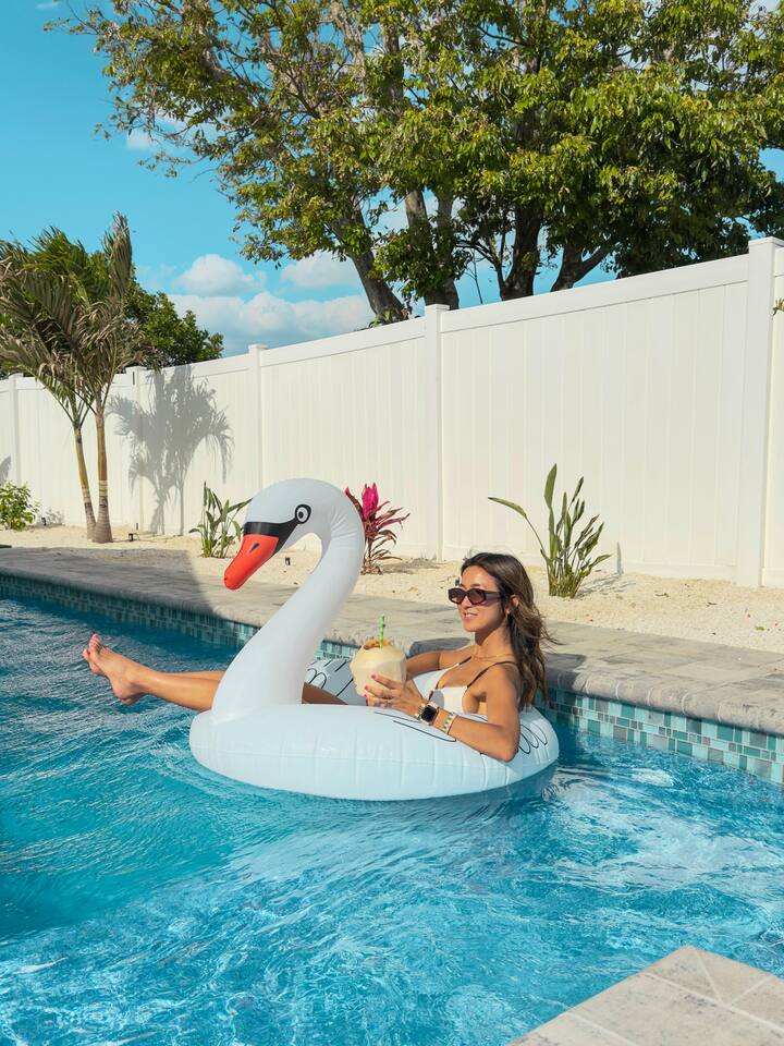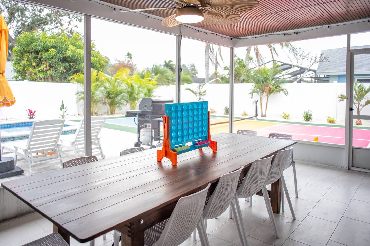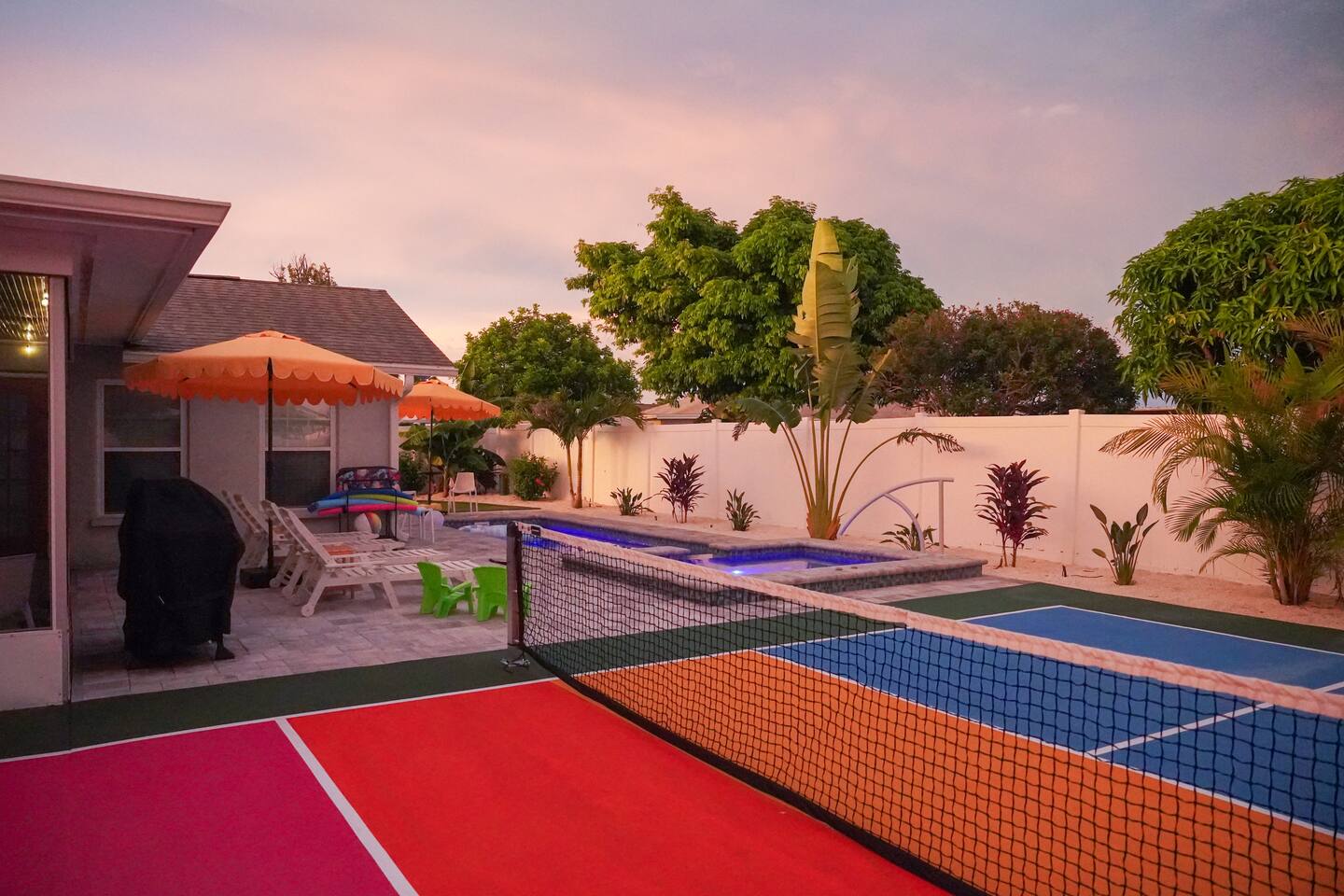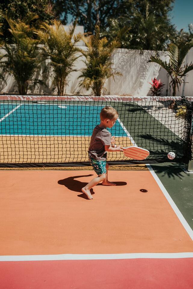 Welcome to Juniper Cove! 🌴 Trade snow boots for flip-flops at our newly renovated tropical retreat, just 10 minutes from the white-sand beaches of Anna Maria Island and IMG Academy. We created Juniper Cove as a warm winter haven – a place for loved ones to relax, connect, and escape the chill. Picture yourself soaking in the 87° heated saltwater pool, unwinding in the hot tub, rallying on the pickleball court, or sharing laughs over a game night in the lanai. At Juniper Cove, every detail is designed to keep you cozy, connected, and making unforgettable memories all winter long. 🛏️ Bedrooms & Bathrooms 🌴 Bedroom 1: King bed, ensuite bathroom, twin sleeper sofa (perfect for a child), and a work-from-home desk. 🌴 Bedroom 2: King bed, ensuite bathroom, and twin sleeper sofa. 🌴 Bedroom 3: King bed, next to a shared guest bathroom. 🌴 Bedroom 4: Full-over-full bunk beds, twin trundle, and a shared guest bathroom—a kid’s dream room! 🌴 Bathrooms: Three full bathrooms (two with walk-in showers, one with a shower/tub combo). ☀️ Backyard Bliss with pool/spa, pickleball, putt-putt, cornhole, and lounge area 🏓 Private Pickleball Court: One of our most-loved features, with paddles and balls included for casual or competitive matches. 🏊♂️ Heated Saltwater Pool: A 87° 9x24-foot swimming pool with a swim shelf and gradual depth up to 4'9". 🛁 Spillover Spa: A spacious 10x10 hot tub at 102° that comfortably seats eight for ultimate relaxation. ⛳ 4-hole Putting Green: Perfectly placed alongside the pool and pickleball court for fun backyard practice. 🌞 Poolside Lounge Chairs: Four comfortable loungers with a bright yellow umbrella for sunny or shaded relaxation. 🍴 Outdoor Gas BBQ Grill & Dining: Enjoy poolside meals or gather at the lanai’s table for 10 for alfresco feasts. 🎮 Entertainment for Everyone 🎱 Game Room: Features a pool table, shuffleboard, two arcade consoles, puzzles, and board games for all ages. 🎮 Xbox One Gaming Console: Includes a variety of games for downtime fun. 🏖️ Adventure & Gear 🌊 Beach Essentials: Chairs, beach towels, umbrellas, toys, a wagon, and a cooler to make your outings stress-free. 🎣 Fishing Rods: Surf and pier fishing gear is available in the garage for your Florida adventures. 🌺 Family-Friendly Touches 👶 Baby and Toddler Gear: Includes two pack-and-plays, a high chair, and kids’ dishware. 🛏️ Blackout Curtains, Sound Machines, and Baby Monitor: Help ensure restful sleep for little ones. 📚 Books, Toys, and Reading Nook: Keep kids entertained throughout your stay. 🛒 Stroller and Wagon: Make outings with young children easy and enjoyable. 📍 Nearby Attractions 🏖️ Anna Maria Island Beaches: Just 10 minutes away, along with Robinson Preserve and IMG Academy. 🌳 Bradenton Riverwalk and Cortez Fishing Village: Only 15 minutes from the house. ⚽ Premier Sports Campus: A short 30-minute drive. ✈️ Sarasota Airport: Just 20 minutes away, with Tampa Airport about an hour from Juniper Cove. 🛍️ Thoughtful Extras Included 🧻 Starter Supplies: Paper products, Keurig coffee pods, tea bags, dish soap, and dishwasher pods. 🍳 Fully Stocked Kitchen: Equipped with a Keurig Duo, air fryer, Crockpot, blender, and more. 📺 WiFi & Smart TVs: Fast WiFi and Smart TVs in every room keep you connected and entertained. 🧺 Washer and Dryer: Includes detergent for your convenience. 🧘 Yoga Mats: Perfect for stretching or light exercise by the pool. 🌞 Make Memories Together ✨ Juniper Cove: Your destination for relaxation, fun, and connection. Play pickleball, lounge by the pool, or enjoy game nights in the game room. We can’t wait to host you at our little slice of paradise!